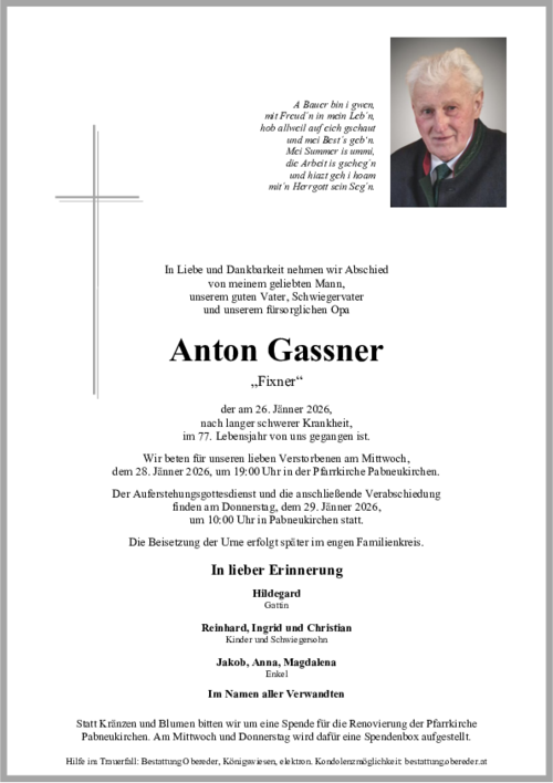 Wir nehmen Abschied von unserem Nachbarn und werden ihn in guter Erinnerung behalten. Ruhe in Frieden.