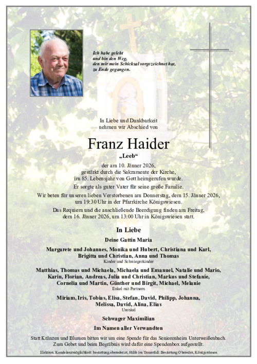 Wir sagen leise Lebewohl und danken dir für all die gemeinsamen Jahre. Ruhe in Frieden, lieber Opa.