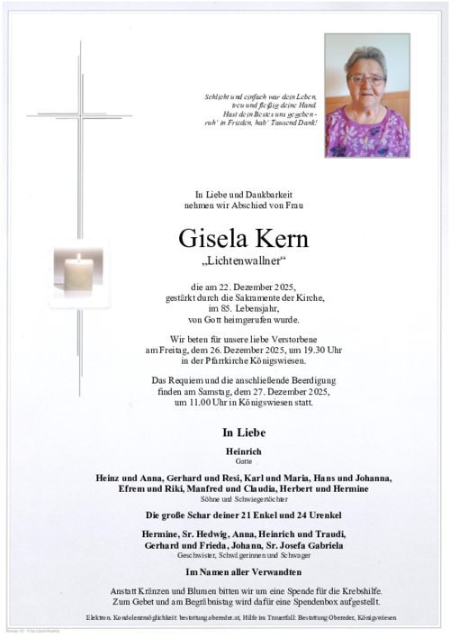 Aufrichtiges Mitgefühl und Beileid der Trauerfamilie.