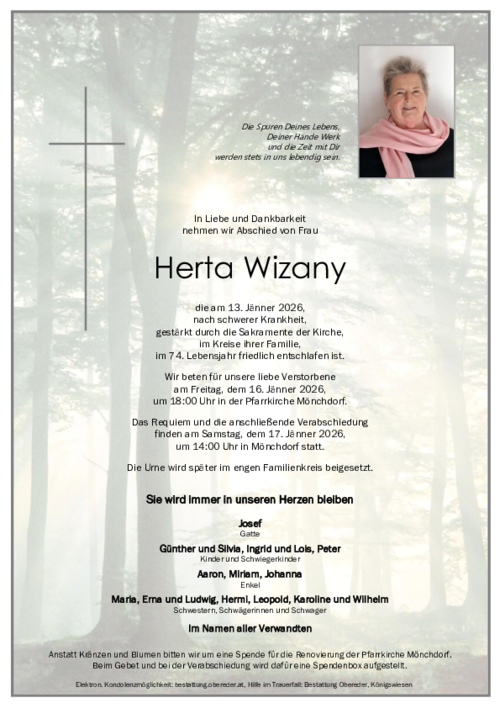 Der Tod ist das Tor zum Licht am Ende eines mühsam gewordenen Weges. Ruhe in Frieden Tante Herta. (Monika)